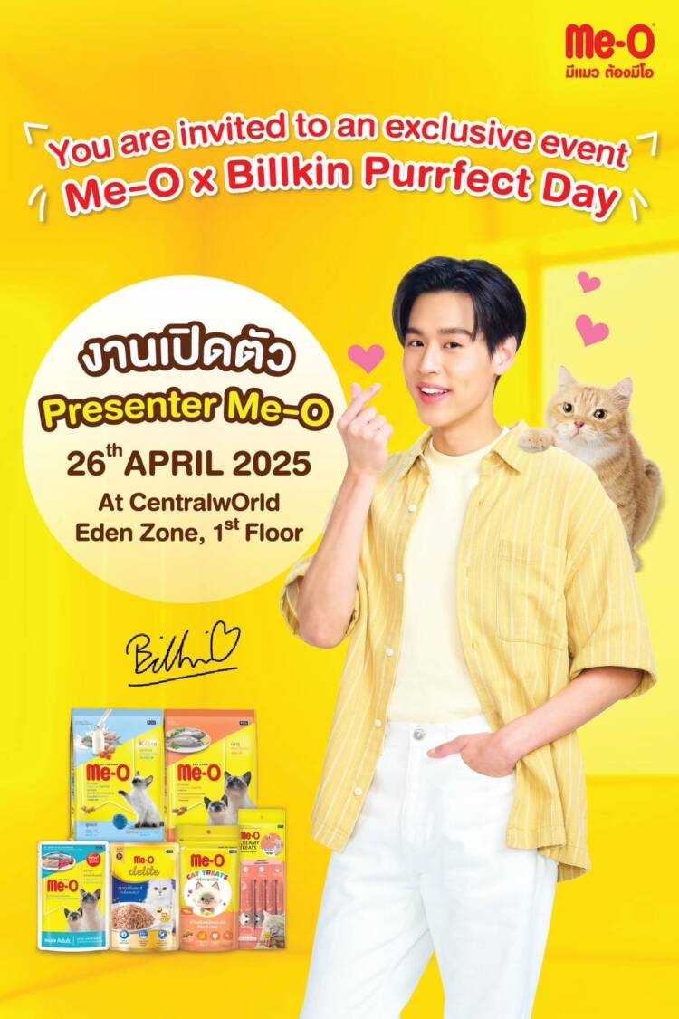 “มีโอ” (Me-O) ตอกย้ำผู้นำตลาดอาหารแมว ประกาศเปิดตัวพรีเซนเตอร์คนล่าสุด “บิวกิ้น – พุฒิพงศ์ อัสสรัตนกุล” พร้อมจัดกิจกรรม “Me-O X Billkin Purrfect Day” #เก็บบิลมีโอไว้ไปใกล้บิวกิ้น เพื่อให้แฟนคลับได้ลุ้นเป็น Lucky Fan พร้อมนำ 5 ผลิตภัณฑ์ยอดนิยมมาร่วมกิจกรรมสุด exclusive ในงานนี้ เข้าร่วมกิจกรรมพิเศษ ลุ้นรับสิทธิ์เป็น Lucky Fanกับ Billkin และพลาดไม่ได้กับ “Me-O 50th Anniversary” Exhibition สุดล้ำ และการเปิดตัว น้องมิโอะ Mascot ของแบรนด์ Me-O พร้อมจุดเช็คอินสุดว้าว! กับแมวยักษ์ ให้ทาสแมวได้เต็มอิ่มกันแบบจุใจ ณ ลาน Eden Zone ชั้น 1 ศูนย์การค้าเซ็นทรัลเวิลด์