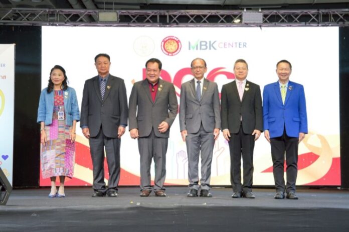 ศูนย์การค้าเอ็ม บี เค เซ็นเตอร์ ใส่ใจสร้างสรรค์สั งคมคุณภาพ สนับสนุนพื้นที่ กองพัฒนาพฤตินิสัย กรมราชทัณฑ์ จัดกิจกรรม รวมพลังอาสาสมัครราชทัณฑ์ คืนคนดีสู่สังคม โดยมี นายสมพล ตรีภพนารถ (ที่ 6 จากซ้าย) ประธานเจ้าหน้าที่บริหารธุรกิ จศูนย์การค้า บริษัท เอ็ม บี เค จำกัด (มหาชน) ร่วมพิธีเปิดและให้การต้อนรับ พันตำรวจเอกทวี สอดส่อง (ที่ 3 จากซ้าย) รัฐมนตรีว่าการกระทรวงยุติธรรม ประธานในพิธี นายสหการณ์ เพ็ชรนรินทร์ (ที่ 4 จากซ้าย) อธิบดีกรมราชทัณฑ์ และ คณะผู้บริหารกรมราชทัณฑ์ กระทรวงยุติธรรม ณ ลานกิจกรรมเอ็ม บี เค อเวนิว โซน A เมื่อเร็ว ๆ นี้
