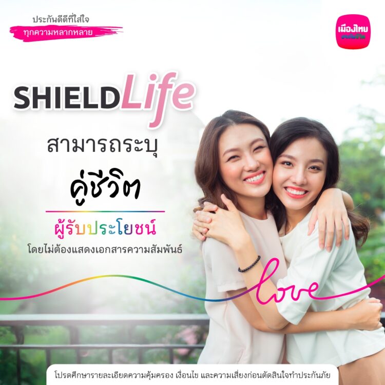 ทั้งนี้ เมืองไทยประกันชีวิตมีประกันดีดี ที่ใส่ใจทุกความหลากหลาย ตอบโจทย์ทุกรูปแบบของความรักและการใช้ชีวิตให้แก่ลูกค้าทุกกลุ่ม ไม่ว่าจะเป็นประกันชีวิตเพื่อส่งต่อหลักประกันให้คนที่คุณรัก ด้วย ShieldLife จากเมืองไทยประกันชีวิต ที่โดดเด่นด้วยวงเงินคุ้มครองที่เลือกเองได้ จ่ายเบี้ย สั้น – ยาว เลือกเองได้ ซื้อได้สูงสุดถึงอายุ 90 ปี คุ้มครองยาวถึงอายุ 99 ปี หรือความคุ้มครองสุขภาพ การวางแผนทางการเงินอย่างการออมทรัพย์ รวมถึงการวางแผนเพื่อการเกษียณ ให้ทุก ๆ ความรักสามารถเข้าถึงทุกบริการได้อย่างเท่าเทียม พร้อมส่งต่อความรักและความสุขให้กับคนที่คุณรักอย่างมั่นคง โดยสามารถระบุผู้รับประโยชน์เป็นคนที่คุณรัก เพียงระบุความสัมพันธ์ ด้วยคำว่า “คู่ชีวิต” โดยไม่มีการขอเอกสารแสดงความสัมพันธ์เพิ่มเติม พร้อมกิมมิคช่องวงเล็บสีรุ้ง อันเป็นสัญลักษณ์ที่สื่อว่า ผู้ขอเอาประกันกลุ่ม LGBTQ สามารถใส่ชื่อคนรัก เป็นผู้รับประโยชน์ได้