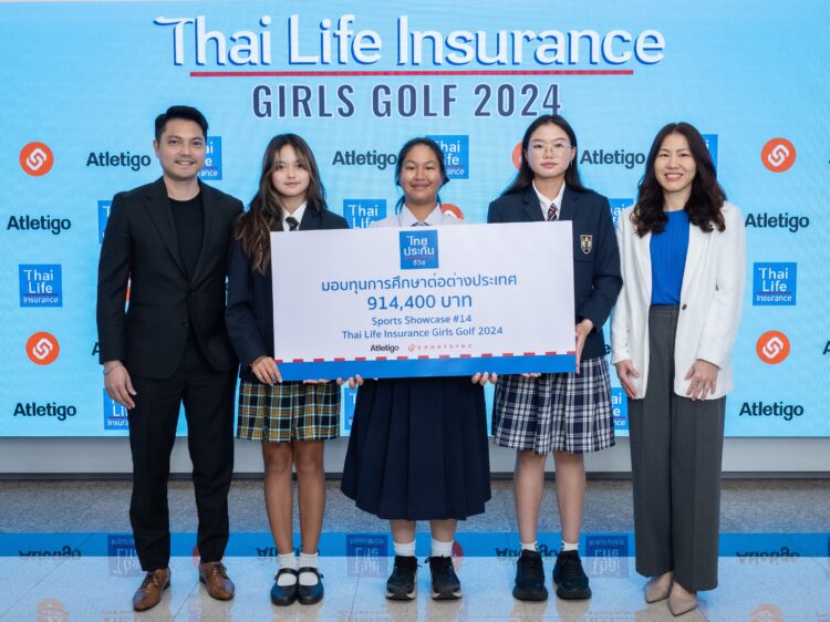 นางสาวฐิติมา เลี้ยงพาณิชย์ ผู้อำนวยการฝ่าย กลุ่มสื่อสารองค์กร บริษัท ไทยประกันชีวิต จำกัด (มหาชน) และ นายอัตนันท์ อัศวธเรศ ประธานเจ้าหน้าที่บริหาร บริษัท แอทเลติโก้ จำกัด ร่วมแสดงความยินดีแก่ 3 นักกอล์ฟเยาวชนหญิง คือ น.ส.ธัญญเนตุ ภูมมะภูติ น.ส.ยูถิกา น่วมไม้พุ่ม และ น.ส.ณัฐกฤตา พิภัทรอักษร ซึ่งได้รับทุนการศึกษาต่อในต่ างประเทศ จากกิจกรรมทัวร์นาเมนต์กอล์ฟ “Thai Life Insurance Girl’s Golf 2024” โครงการ Sports Showcase ครั้งที่ 14 พร้อมมอบทุนเพิ่มเติ มจากไทยประกันชีวิตรวมมูลค่า 914,000 บาท ณ อาคารไทยประกันชีวิต สำนักงานใหญ่