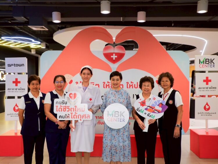ศูนย์การค้าเอ็ม บี เค เซ็นเตอร์ ใส่ใจคุณภาพชีวิ ตของคนไทย ภายใต้แนวคิด MBK Care ร่วมกับ ศูนย์บริการโลหิตแห่งชาติ และ ศูนย์รับบริจาคอวัยวะ สภากาชาดไทย จัดกิจกรรม บริจาคโลหิต อวัยวะและดวงตา หนึ่งคนให้หลายคนรับ ครั้งที่ 18 ประจำปี 2568 โดยมี นางสาวศตกมล วรกุล (ที่ 4 จากซ้าย) ผู้อำนวยการอาวุโสฝ่ายสื่ อสารองค์กร บริษัท อินเทลลิเจ้นท์ ครีเอทีฟ แอนด์ มาร์เก็ตติ้ง จำกัด เป็นตัวแทนผู้บริหารศูนย์การค้ าเอ็ม บี เค เซ็นเตอร์ ให้การต้อนรับคณะแพทย์ พยาบาลและเจ้าหน้าที่ จากสภากาชาดไทย โดยมีผู้ลงทะเบียนบริจาค 150 ราย จำนวนโลหิตที่ได้รับ 122 ยูนิต ผู้บริจาคดวงตา อวัยวะและร่างกาย จำนวน 30 ราย ณ ชั้น 7 โซน A เมื่อเร็ว ๆ นี้