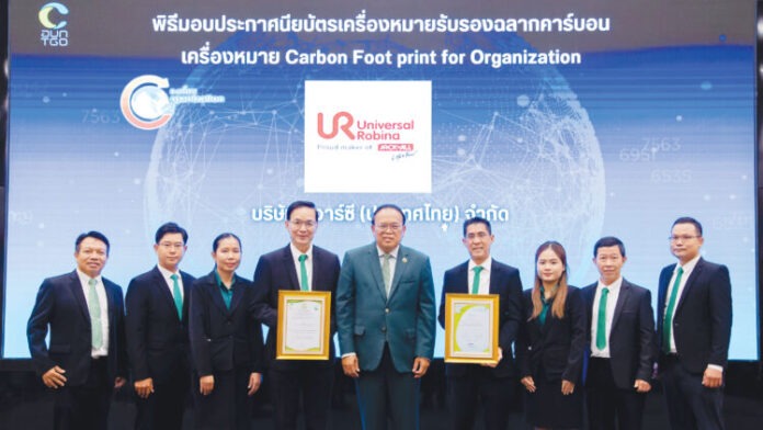 บริษัท ยูอาร์ซี (ประเทศไทย) จำกัด การันตีความมุ่งมั่นในการสร้างประสบการณ์ผ่านขนมที่อร่อยให้กับผู้บริโภคควบคู่ไปกับการตอบแทนสิ่งดีๆ กลับคืนสู่สังคม ล่าสุดได้รับประกาศนียบัตร เครื่องหมายรับรองคาร์บอนฟุตพริ้นท์ขององค์กร (Carbon Footprint for Organization: CFO) ประจำปี 2568 จากองค์การบริหารจัดการก๊าซเรือนกระจก (องค์การมหาชน) ต่อเนื่องเป็นปีที่ 2 ขยายผลการรับรองครอบคลุม 4 โรงงาน และ 2 โกดัง พร้อมช่วยลดก๊าซเรือนกระจกกว่า 9,990 ตันคาร์บอนไดออกไซด์เทียบเท่า ตอกย้ำการดำเนินธุรกิจที่มุ่งมั่นสู่การพัฒนาอย่างยั่งยืน และพร้อมสนับสนุนเป้าหมายในการนำประเทศไทยสู่ Carbon Neutral