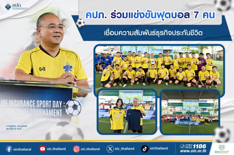 สำนักงานคณะกรรมการกำกับและส่งเสริมการประกอบธุรกิจประกันภัย (สำนักงาน คปภ.) ร่วมกับ สมาคมประกันชีวิตไทย จัดการแข่งขันฟุตบอล 7 คน เชื่อมความสัมพันธ์ธุรกิจประกันชีวิต ณ สนาม Super Star Arena ลาดพร้าว 80 โดยมี นายชูฉัตร ประมูลผล เลขาธิการ คปภ. เป็นประธานในพิธีเปิดงาน เมื่อวันที่ 28 มิถุนายน 2568 ภายในงานได้รับเกียรติจากผู้บริหารระดับสูงของสมาคมประกันชีวิตไทย นำโดย นางนุสรา (อัสสกุล) บัญญัติปิยพจน์ นายกสมาคมฯ รวมทั้ง ยังมีผู้บริหารบริษัทประกันชีวิต สื่อมวลชน และทีมผู้เข้าแข่งขันจากหลากหลายบริษัทเข้าร่วมอย่างคับคั่ง สะท้อนถึงความร่วมมืออันแข็งแกร่งของภาคธุรกิจประกันชีวิตไทย