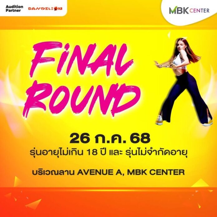ต่อเนื่องความมันส์กันแบบไม่พัร่วมลุ้นร่วมเชียร์ทีมที่จะได้ แชมป์เป็นที่สุดของนักเต้ นโคฟเวอร์แดนซ์ ในการแข่งขันสุดเดือดรอบ FINAL ROUND ของการแข่งขัน MBK COVER DANCE 2025 รายการเต้นสุดยิ่งใหญ่แห่ งปี ชิงถ้วยพระราชทานสมเด็จพระกนิ ษฐาธิราชเจ้า กรมสมเด็จพระเทพรัตนราชสุดา ฯ สยามบรมราชกุมารี และทุนการศึกษารวมมูลค่ากว่า 150,000 บาทจัดโดย ศูนย์การค้ าเอ็ม บี เค เซ็นเตอร์ ร่วมกับ สถาบัน Dandelion Studio By AuditionPartner ในวันเสาร์ที่ 26 กรกฎาคม 2568 ประเภทอายุไม่เกิน 18 ปี และ ประเภทไม่จำกัดอายุ ตั้งแต่เวลา 11.00 น. – 20.30 น. บริเวณชั้น G ลานกิจกรรมเอ็ม บี เค อเวนิว โซน A