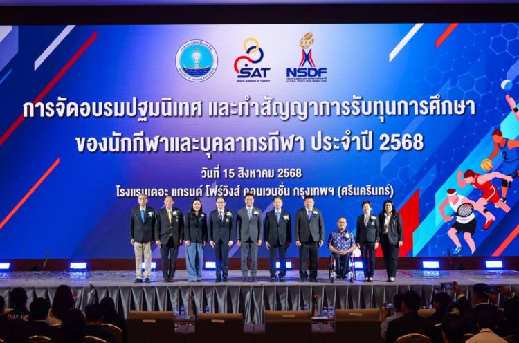 18ส.ค.2568/ เมื่อวันที่ 15 สิงหาคม 2568 เวลา  08.00 น. ณ  ห้อง Paviillion AB โรงแรม เดอะแกรนด์  โฟร์วิงส์  กองทุนพัฒนาการกีฬาแห่งชาติ (NSDF) จัดพิธีอบรมปฐมนิเทศและทำสัญญาการรับทุนการศึกษาของนักกีฬาและบุคคลากรทางกีฬา ประจำปี 2568 ภายในงานได้รับเกียรติจาก นายจักรพรรดิ์ คล่องพยาบาล ที่ปรึกษารัฐมนตรีว่าการกระทรวงการท่องเที่ยวและกีฬา ที่ได้รับมอบหมายจากนายสรวงศ์ เทียนทอง รัฐมนตรีว่าการกระทรวงการท่องเที่ยวและกีฬา เป็นประธานในพิธี พร้อมด้วย ดร.ก้องศักดิ์ ยอดมณี ผู้ว่าการกีฬาแห่งประเทศไทย, นายทนุเกียรติ จันทร์ชุม ผู้จัดการกองทุนพัฒนาการกีฬาแห่งชาติ คณะกรรมการบริหารกองทุนพัฒนาการกีฬาแห่งชาติ  และแขกผู้มีเกียรติจำนวนมากเข้าร่วมงานมาก