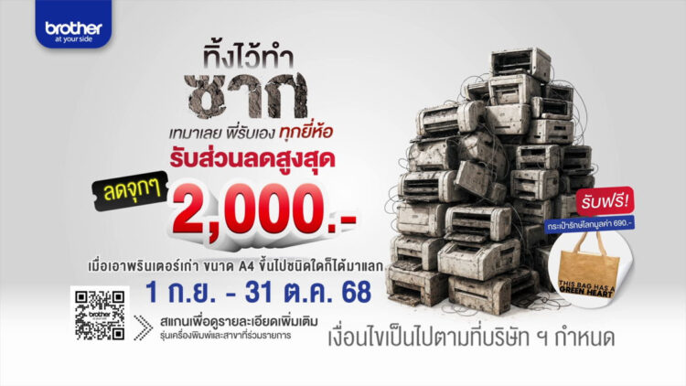 กรุงเทพฯ 1 กันยายน 2568 – Brother ผู้นำโซลูชันด้านการพิมพ์ จากประเทศญี่ปุ่น ชวนมาอัปเกรดเครื่องพิมพ์เก่ าให้เป็นเครื่องใหม่ หรือคืนชีวิตให้ซากเครื่องพิมพ์ เก่าให้กลับมาใช้งานได้อีกครั้ ง ในแคมเปญ Trade-In สุดแรงแห่งปี “ทิ้งไว้ทำซาก – เทมาเลยพี่รับเอง ทุกรุ่นทุกยี่ห้อ” เพียงนำเครื่องพิมพ์ขนาด A4 ขึ้นไป ทุกรุ่น ทุกยี่ห้อ ไม่ว่าจะเป็นเลเซอร์ อิงค์เจ็ท อิงค์แท็งค์ มัลติฟังก์ชัน หรือเครื่องพิมพ์ดอตเมทริกซ์ก็ ได้ มาแลกรับส่วนลดทันทีสำหรับซื้ อเครื่องพิมพ์ Brother รุ่นใหม่ที่ร่วมรายการ รับส่วนลดจุก ๆ ไปเลยสูงสุดถึง 2,000 บาท