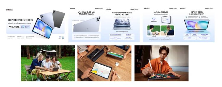 โดย Infinix XPAD 20 Pro ถือเป็นแท็บเล็ตเครือข่าย 4G รุ่นแรก ที่ใช้โครงสร้างและการออกแบบเสาอากาศแบบรวมศูนย์ ทำให้ตัวเครื่องเรียบหรูและบางเพียง 6.58 มม. แต่ยังคงความแข็งแกร่งและพรีเมียม มาพร้อมฟีเจอร์ AI อัจฉริยะ ที่ช่วยให้การใช้งานฉลาดขึ้น อาทิ AI Note-Taking สรุปและจัดระเบียบบันทึกอัตโนมัติ AI Voice Assistant ควบคุมการสั่งงานและค้นหาข้อมูลได้สะดวก AI Optimization ปรับประสิทธิภาพการทำงานและประหยัดพลังงานอัตโนมัติ