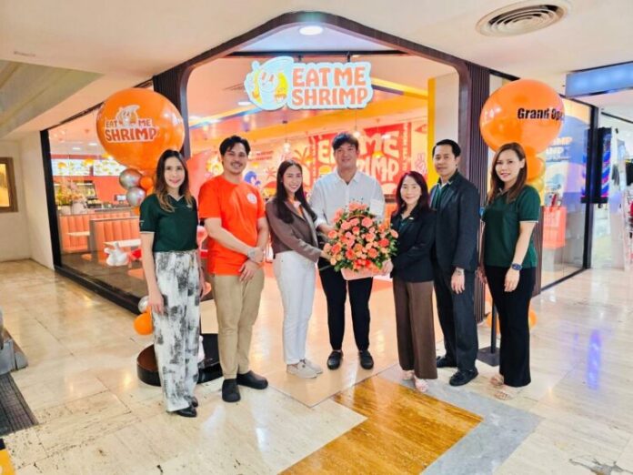 เมื่อเร็ว ๆ นี้ นางสาวสหัพย์ภัค โชควิจิตรกุล (ที่ 5 จากซ้าย) กรรมการผู้จัดการ ศูนย์การค้าเอ็ม บี เค เซ็นเตอร์ นางสาวชวรมย์ มังคละคีรี (ที่ 1 จากซ้าย) รองกรรมการผู้จัดการศูนย์การค้ าเอ็ม บี เค เซ็นเตอร์ และ นายอนพัทย์ ปรีชาวุฒินันท์ (ที่ 6 จากซ้าย) ผู้อำนวยการฝ่ายขายพื้นที่เช่า บริษัท เอ็มบีเค เซอร์วิส โซลูชั่น จำกัด มอบกระเช้าดอกไม้แสดงความยินดี แก่ นายจิรภัทร วิมาณเหมินทร์ (ที่ 4 จากซ้าย) นางสาววจีทิพย์ นพจำรูญศรี (ที่ 3 จากซ้าย) และ นายภูเตโช กาญจนกิตติกูล หรือ เชฟบิว แชมป์ Hell’s Kitchen Thailand Season 1 (ที่ 2 จากซ้าย) เนื่องในโอกาสเปิดร้านใหม่ EAT ME SHRIMP ฟาสต์ฟู้ดกุ้งเจ้ าแรกในประเทศไทย และ สาขาแรกที่ศูนย์การค้าเอ็ม บี เค เซ็นเตอร์ ร้านสีสันโดดเด่น เสิร์ฟเมนูหลากหลายจากกุ้งสด ๆ ปลอดสาร ส่งตรงจากฟาร์มกระบี่ เปิดให้บริการแล้ววันนี้ที่ร้าน EAT ME SHRIMP ชั้น 5 โซน A ศูนย์การค้าเอ็ม บี เค เซ็นเตอร์