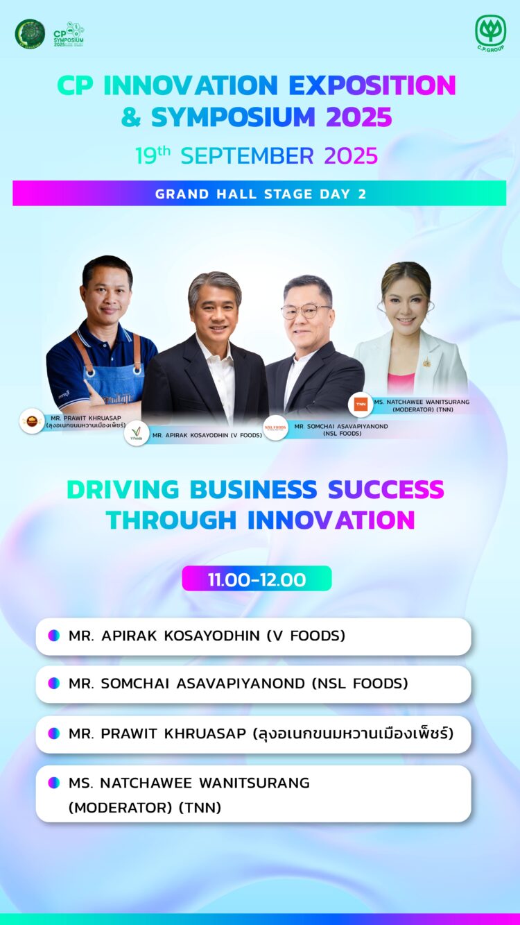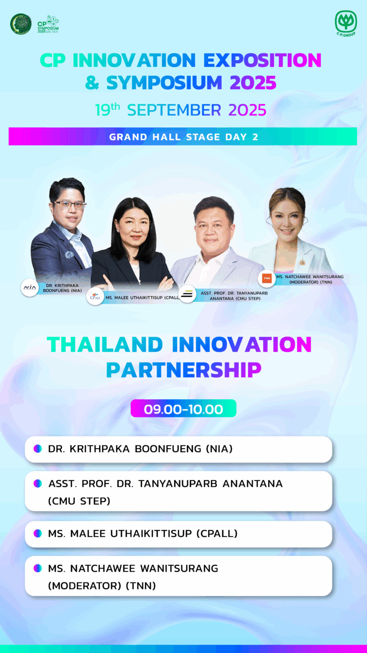 ภายในงานยังมีการนำเสนอผลงานนวัตกรรมใหม่ ๆ ที่พร้อมต่อยอดสู่การใช้งานจริง โดยเน้นการเชื่อมโยง คน–เทคโนโลยี–สังคม เข้าด้วยกัน เพื่อสร้างระบบนิเวศนวัตกรรม (Innovation Ecosystem) ที่ยกระดับขีดความสามารถในการแข่งขันของประเทศ ตอกย้ำบทบาทของ “คนซีพี” ในการเป็นแรงขับเคลื่อนเศรษฐกิจและสังคมไทยให้เติบโตอย่างยั่งยืน
