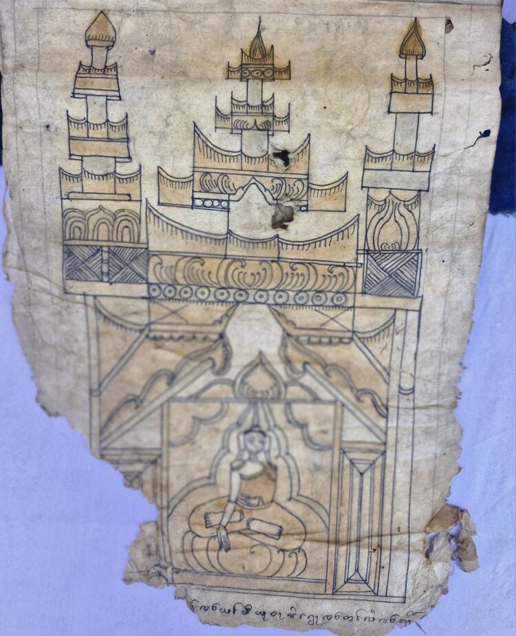 พับสาเรื่อง “พุทธาภิเษก” จารเมื่อ จ.ศ. 1171 (อายุ 217 ปี) คัดลอกสืบมาจากเมืองเชียงแสน
