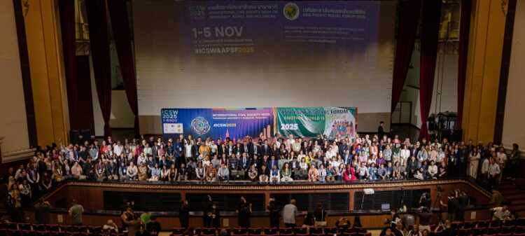 มหาวิทยาลัยธรรมศาสตร์ ร่วมกับเครือข่ายองค์กรประชาธิปไตย และภาคประชาสังคมระดับโลก ได้แก่ Asia Democracy Network (ADN), CIVICUS: World Alliance for Citizen Participation, และ Asia Pacific Social Forum (APSF) เปิดงาน “งานสัปดาห์ประชาสังคม นานาชาติ และ เวทีประชาสังคมเอเชียแปซิฟิก ปี 2568” (International Civil Society Week & Asia Pacific Social Forum 2025 – ICSW & APSF 2025) เวทีระดับโลกที่รวมผู้นำองค์กรภาคประชาสังคม นักวิชาการ นักกิจกรรม และเยาวชนกว่า 1,300 คน จาก 90 ประเทศ เพื่อแลกเปลี่ยนองค์ความรู้ และแนวทาง ความร่วมมือ ขับเคลื่อนสังคมที่เท่าเทียมและยั่งยืน