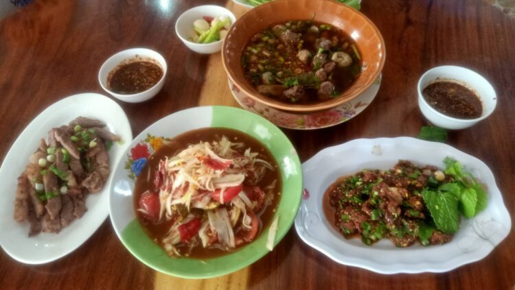คุณยายน้อย หรือคุณเจียมจิต คะดาจิต อายุ 57 ปี เจ้าของร้านบอกว่า ร้านนี้เวลาเปิด-ปิด คือ 06:00 – 15:30 น. และมีที่จอดรถให้บริการ ร้านนี้มีเมนูแนะนำ เช่น ต้มไส้ขอดอร่อยๆ ยอกจากนี้ยังมีอาหารอีสานอื่นๆ อีกมาก