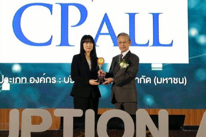 ในการนี้ นางสาวเพลินใจ อรุณนพรัตน์ ผู้ช่วยกรรมการผู้จัดการ บริษัท ซีพี ออลล์ จำกัด (มหาชน) เป็นผู้แทนองค์กรเข้ารับรางวัล ซึ่งถือเป็นอีกหนึ่งความภาคภูมิใจ ที่สะท้อนถึงความมุ่งมั่นของซีพี ออลล์ในการยืนหยัดต่อต้านการทุจริต และการกำกับดูแลองค์กรด้วยหลักธรรมาภิบาลอย่างจริงจังและต่อเนื่อง