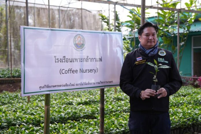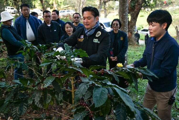วันที่ 14 มกราคม 2569 นายรพีภัทร์ จันทรศรีวงศ์ อธิบดีกรมวิชาการเกษตร ลงพื้นที่จังหวัดเชียงใหม่ เพื่อติดตามความก้าวหน้าโครงการกระจายพันธุ์ต้นกล้ากาแฟพันธุ์ดีของกรมวิชาการเกษตร จำนวน 1 ล้านต้น ณ โรงผลิตต้นกล้ากาแฟ ศูนย์วิจัยเกษตรหลวงเชียงใหม่ (แม่จอนหลวง) ตำบลแม่นาจร อำเภอแม่แจ่ม จังหวัดเชียงใหม่ โดยมุ่งยกระดับกาแฟไทยเป็นพืชเศรษฐกิจสำคัญ เพิ่มผลผลิต ลดการนำเข้า และสร้างรายได้ที่มั่นคงให้เกษตรกรพื้นที่สูงอย่างยั่งยืน