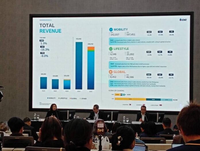 OR เผยผลการดำเนินงานปี 2568 มีรายได้ขายและบริการ 658,723 ล้านบาท ลดลง 9.0 % จากปีก่อนหน้า ในขณะที่มี EBITDA จำนวน 20,357 ล้านบาท เพิ่มขึ้น 2,691 ล้านบาท หรือเพิ่มขึ้น 15.2% สะท้อนความสามารถในการปรับตัวท่ามกลางความท้าทาย พร้อมเดินหน้ายกระดับรูปแบบการดำเนินธุรกิจสู่การสร้างความแข็งแกร่งให้กับระบบนิเวศทางธุรกิจ (OR Ecosystem) มุ่งเชื่อมโยงธุรกิจ พันธมิตร และผู้บริโภค ผ่านทั้ง Physical และ Digital Platform เพื่อวางรากฐานการเติบโตอย่างยั่งยืนในระยะยาว