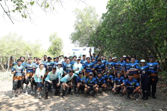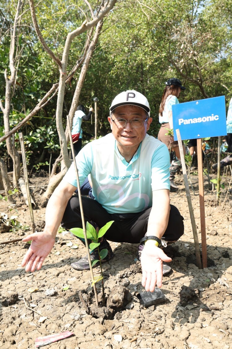 สำหรับจำนวนต้นโกงกางกว่า 1,222 ต้น ที่นำมาปลูกได้รับความร่วมมือจากพนักงานและพันธมิตรผ่าน 2 กิจกรรมหลัก ได้แก่ Panasonic Hero Run Green Impact for Charity 2025 เปลี่ยนระยะทางวิ่งทุก 10 กิโลเมตรเป็นต้นไม้ 1 ต้น โดยสามารถสะสมระยะทางได้รวม 10,917 กิโลเมตร คิดเป็นจำนวนต้นไม้ 1,092 ต้น และกิจกรรม Panasonic Let’s grow แคมเปญรณรงค์คัดแยกขวดพลาสติก ทุก 20 กิโลกรัมจะถูกเปลี่ยนเป็นต้นไม้ 1 ต้น ซึ่งรวบรวมขวดพลาสติกได้กว่า 2,600 กิโลกรัม หรือคิดเป็นต้นไม้กว่า 130 ต้น