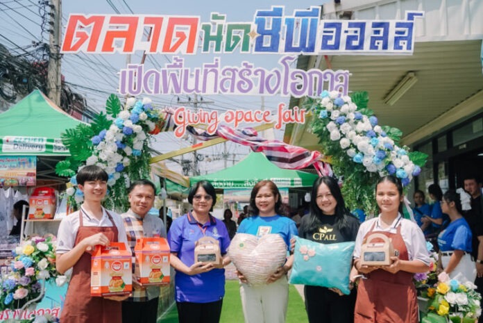 ภายในงานได้มีการนำผลิตภัณฑ์โครงการ Giving Space Fair เป็นส่วนหนึ่งของความมุ่งมั่ นภายใต้ปณิธานองค์กร “Giving and Sharing” ตามนโยบาย “สร้างชุมชนอุ่นใจ” ของซีพี ออลล์ ที่ต้องการเป็นสะพานบุ ญในการขยายช่องทางการตลาดให้กั บกลุ่มคนพิการโดยไม่เสียค่าใช้ จ่าย เพื่อให้พวกเขาสามารถเข้าถึ งโอกาสทางเศรษฐกิจ พึ่งพาตนเองได้ และสร้างการรับรู้ถึงผลิตภัณฑ์ คุณภาพสู่สังคมในวงกว้าง