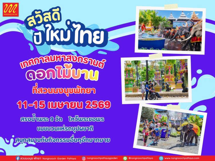 สวนนงนุชพัทยา นำโดย นายกัมพล ตันสัจจา ประธานสวนนงนุชพัทยา ประกาศความพร้อมในการจัดงาน “เทศกาลมหาสงกรานต์ดอกไม้บานที่สวนนงนุชพัทยา” ต้อนรับปีใหม่ไทย ในช่วงระหว่างวันที่ 11–15 เมษายน 2569 เพื่อเปิดพื้นที่ให้นักท่องเที่ยวได้ร่วมสืบสานวัฒนธรรมไทย พร้อมทำบุญกราบไหว้ขอพรเพื่อความเป็นสิริมงคลแก่ชีวิต