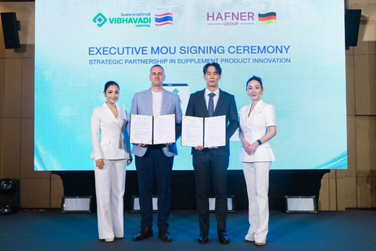 กรุงเทพฯ – ฮาฟเนอร์ กรุ๊ป (Hafner Group) ผู้เชี่ยวชาญด้านการผลิตผลิตภัณฑ์เสริมอาหารจากประเทศเยอรมนี พร้อมประกาศความร่วมมือครั้งสำคัญผ่านการลงนามบันทึกข้อตกลง (MOU) กับ โรงพยาบาลวิภาวดี เพื่อร่วมกันพัฒนาผลิตภัณฑ์เสริมอาหารในมิติของ “Prevention” อย่างเป็นรูปธรรม มุ่งยกระดับคุณภาพชีวิตและการดูแลสุขภาพเชิงป้องกันของคนไทยในระยะยาว