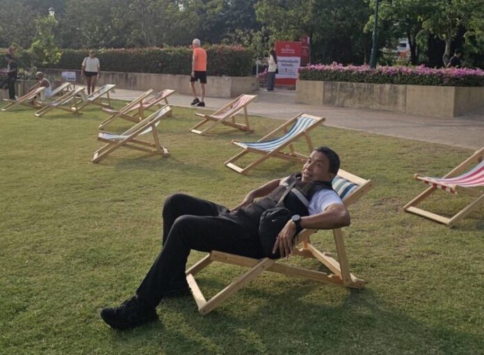 วานนี้ (28 เม.ย. 69) นายชัชชาติ สิทธิพันธุ์ ผู้ว่าราชการกรุงเทพมหานคร พาชมจุดทดลองวางเก้าอี้ผ้าใบ ในคอนเซปต์ “เก้าอี้แบ่งปัน” Chair for Sharing หรือที่ผู้ว่าฯ ชัชชาติ เรียกว่าเก้าอี้ “เหนื่อยนักพักก่อน” ณ ลานริมสระน้ำ บริเวณประตู 1 สวนเบญจกิติ เขตคลองเตย