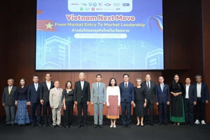 กรุงเทพฯ 30 เมษายน 2569 – คุณจริยา จิราธิวัฒน์ ประธานสภาธุรกิจไทย-เวียดนาม (ที่ 9 จากซ้าย) คุณฝั่ม เหวียต หุ่ง (H.E. Mr. Pham Viet Hung) เอกอัครราชทูตสาธารณรัฐสังคมนิยมเวียดนามประจำประเทศไทย (ที่ 8 จากซ้าย) คุณจีรพันธ์ อัศวะธนกุล รองประธานกรรมการ หอการค้าไทย (ที่ 7 จากซ้าย) พร้อมด้วยคณะกรรมการสภาฯ และผู้แทนจากหน่วยงานภาครัฐ-เอกชน ร่วมเปิดงานสัมมนา “Vietnam Next Move: From Market Entry to Market Leadership ก้าวต่อไปของธุรกิจไทยในเวียดนาม” เพื่อเฉลิมฉลองครบรอบ 50 ปี ความสัมพันธ์ทางการทูตไทย-เวียดนาม ตอกย้ำบทบาทความเป็นหุ้นส่วนยุทธศาสตร์รอบด้านที่มุ่งเปลี่ยนวิสัยทัศน์เชิงนโยบายสู่การปฏิบัติจริง พร้อมติดอาวุธให้ผู้ประกอบการไทยด้วยข้อมูลเชิงลึกด้านกฎระเบียบใหม่และแนวโน้มเศรษฐกิจปี 2026 เพื่อช่วยให้ผู้ประกอบการไทยสามารถวางกลยุทธ์และขยายธุรกิจในเวียดนามได้อย่างมีประสิทธิภาพมากยิ่งขึ้น โดยกิจกรรมดังกล่าวจัดขึ้น ณ อาคาร CW Tower เมื่อวันก่อนที่ผ่านมา